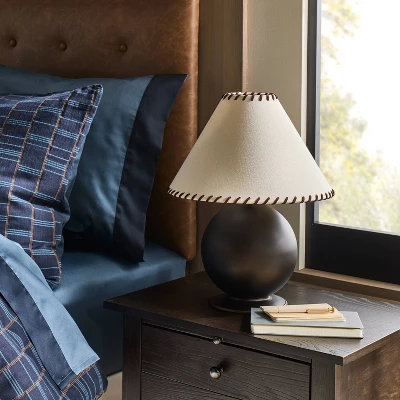 Add an elegant appeal to your home decor with the Black Metal Base from Threshold™ designed with Studio McGee. This black lamp base is designed in a round shape for a stylish and modern look. Made of metal, this lamp base has a one-way on and off light setting with a turn-knob rotary switch for easy on and off.